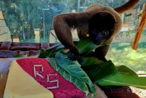Em homenagem ao Rio Grande do Sul, a atividade de enriquecimento ambiental contou com uma polenta com as cores da bandeira dos gaúchos. O alimento foi distribuído para bugios, macacos-barrigudo, araras, tucanos, seriemas, papagaios e outras aves. Para colorir, a equipe utilizou beterraba e folhas de couve. “Nas baixas temperaturas, suplementamos a refeição dos animais. Oferecemos nutrientes mais calóricos para que eles mantenham o bem-estar”, diz a bióloga Tathiana Gosaric de Barros, responsável técnica do Gramadozoo.