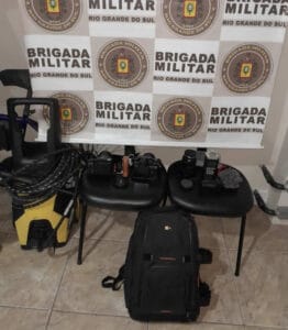 Ele confirmou que havia furtado o lava jato em uma oficina. No estabelecimento a vítima reconheceu o objeto como sendo de sua propriedade. Questionado sobre os equipamentos furtados da rádio, a abordado relatou ter vendido para um receptador no Bairro Canelinha. No endereço indicado foi abordado o homem, de 43 anos. No local foi visualizado em cima do sofá a mochila furtada. Perguntado sobre a procedência da mochila, este disse ter comprado do autor do furto, por R$ 50,00, dentro estavam os equipamentos eletrônicos: um carregador de pilha, um cabo HDMI, um suporte e três câmeras digitais. Ele foi preso em flagrante por receptação.