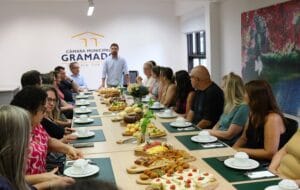 O presidente da Câmara, vereador Ike Koetz, enfatizou a importância da iniciativa: “Queremos que este café seja um instrumento para estreitarmos os laços com cada escola do nosso município. Nós, vereadores, legislamos para todos os gramadenses e precisamos estar alinhados com as demandas da educação para criarmos políticas públicas mais eficientes. Mas, além disso, queremos trazer vocês para a Casa do Povo e, juntos, formarmos os novos líderes de Gramado.”