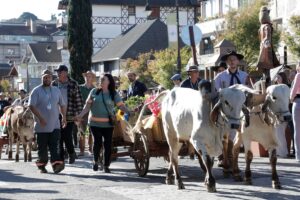 O Desfile de Carreta da Festa da Colônia de Gramado voltou a ser realizado nesta 34ª edição do evento. Com as chuvas de maio de 2024, que cancelaram a festa, a tradicional carreata pela avenida Borges de Medeiros não foi realizada. Em seu retorno, o desfile reuniu 35 carretas puxadas por bois – um número recorde – na tarde do último sábado, dia 10. O cortejo mostra o cotidiano da vida no interior, homenageando as etnias alemã, italiana e portuguesa. Nas carretas, estavam retratados os produtos coloniais, as ferramentas de trabalho e os hábitos e costumes dos agricultores gramadenses.