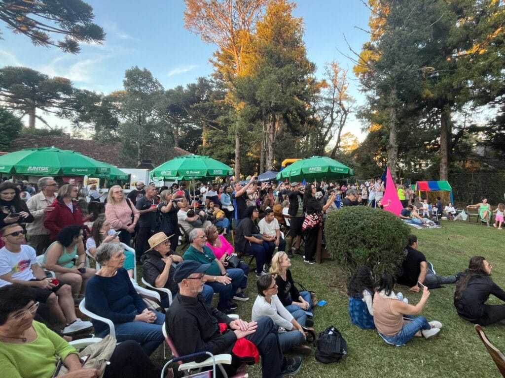 O domingo ensolarado e com temperaturas agradáveis foi o cenário ideal para a celebração do Dia da Cultura Gramadense, comemorado no Território Criativo Vila Joaquina, junto ao complexo do Lago Joaquina Rita Bier. Com a proposta de valorizar a diversidade artística do município e oferecer atrações qualificadas à comunidade e aos turistas, o evento mobilizou a classe cultural brindando o público com diversas expressões de arte. Shows musicais, exposição de artesanato e pinturas em tela, oficinas, teatro de bonecos, dança, troca de livros e mais uma edição do Cine Joaquina fizeram parte da programação do evento.