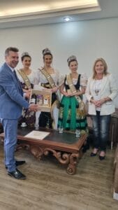 Festa da Uva 2024 será divulgada presencialmente por uma comitiva em 30 municípios do Estado. A vice-prefeita de Caxias do Sul e diretora de Integração Regional da Comissão Comunitária, Paula Ioris, a Rainha da Festa, Lizandra Mello Chinali, e as princesas Eduarda Ruzzarin Menezes e Letícia de Carvalho iniciaram as visitas pela região nesta terça (24.10). O primeiro roteiro incluiu Farroupilha, Carlos Barbosa, Garibaldi e Bento Gonçalves.