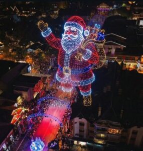 O encerramento do desfile ainda reserva um momento especial: o Papai Noel fará a entrega simbólica de um presente de Natal com o auxílio de um drone, em frente à Igreja São Pedro, concluindo a noite com uma cena que reforça o caráter inovador e memorável desta edição histórica do Natal Luz de Gramado.
