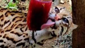 O forte calor que atinge o Rio Grande do Sul exige cuidados especiais com os animais do Gramadozoo. Para refrescar a bicharada, a equipe técnica preparou picolés de carne, frutas e legumes. Nesta terça-feira, dia 4, foram entregues picolés de banana, mamão, melão, tomate, pepino, cenoura, beterraba, couve e carne para a capivara, macacos-pregoe jaguatiricas. Além de ajudar a preservar o bem-estar nas altas temperaturas, o enriquecimento ambiental serve como passatempo para os animais.